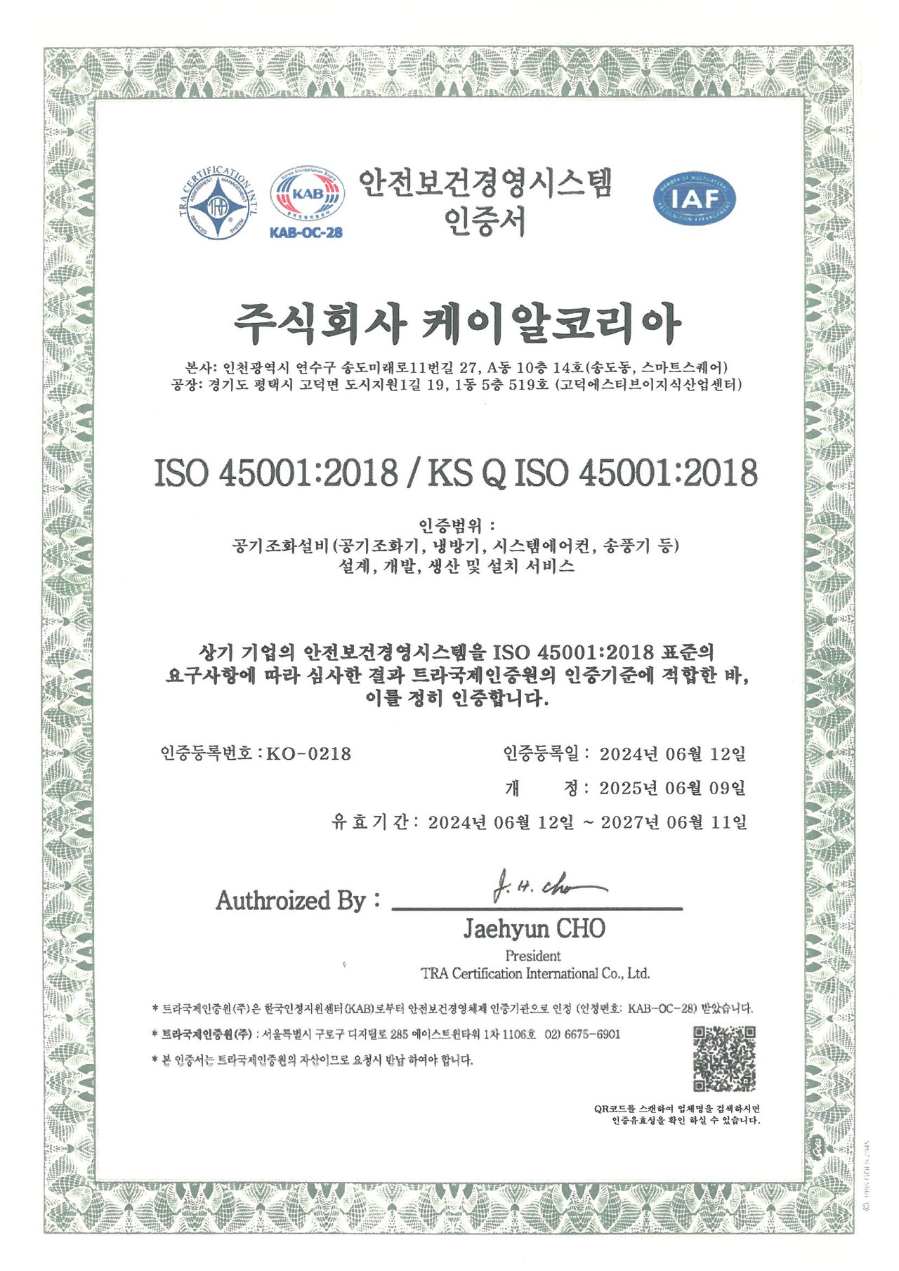 주식회사 케이알코리아는 안전보건을 경영활동의 최우선 가치로 인식하고 이를 달성하기 위해 안전보건 경영방침을 선언하며, 안전한 일터를 조성하기 위해 전 임직원과 이해관계자 등은 아래의 방침을 적극적으로 실천한다.
